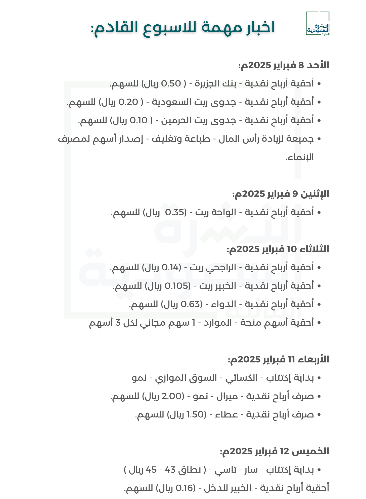 توزيع 0.14 ريال عن الربع الرابع 2025
