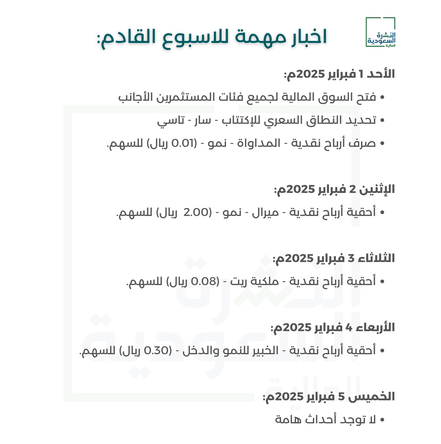 🔹 سال اللوجيستية : استكمال طرح صكوك مقومة بالريال بقيمة 1 مليار ريال بعائد سايبور 6 أشهر + 130 نقطة أساس نصف سنوي.